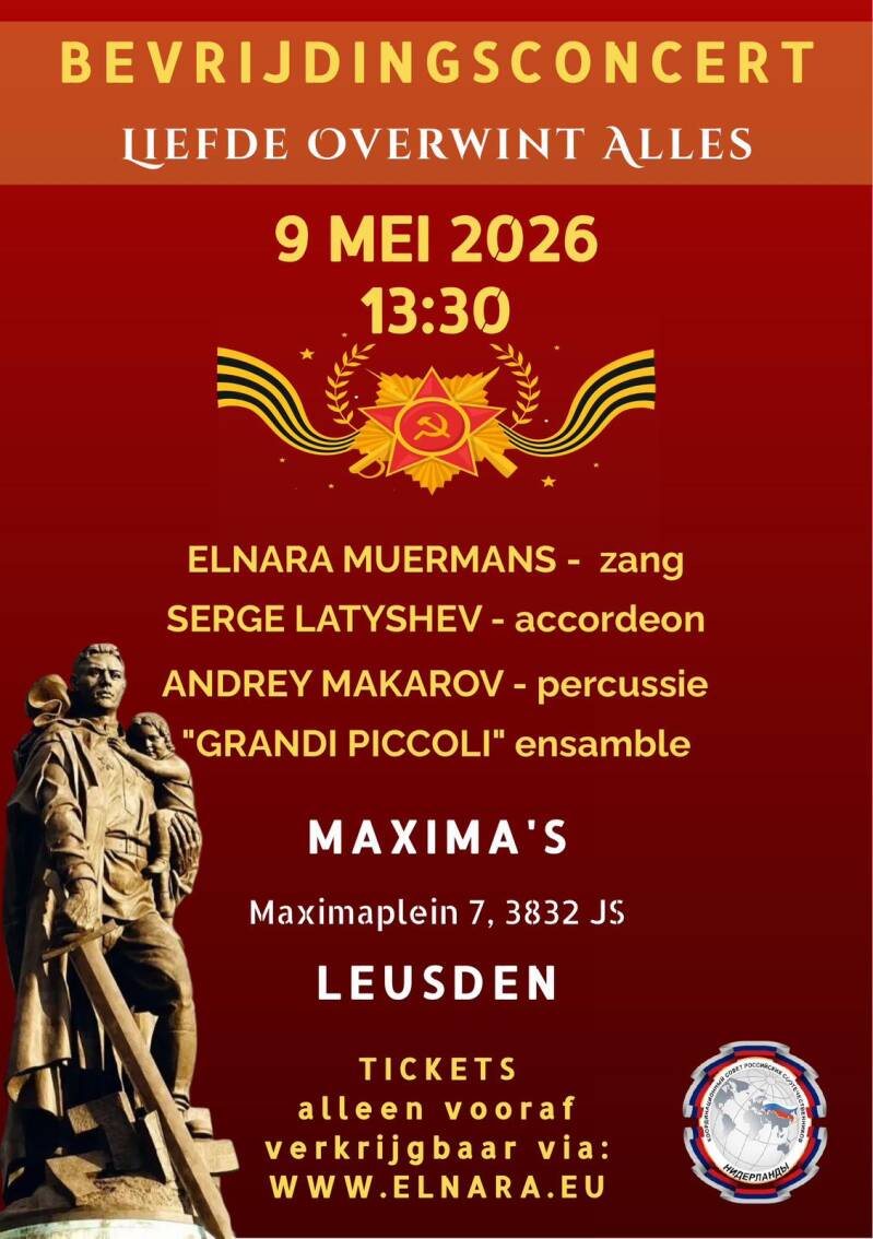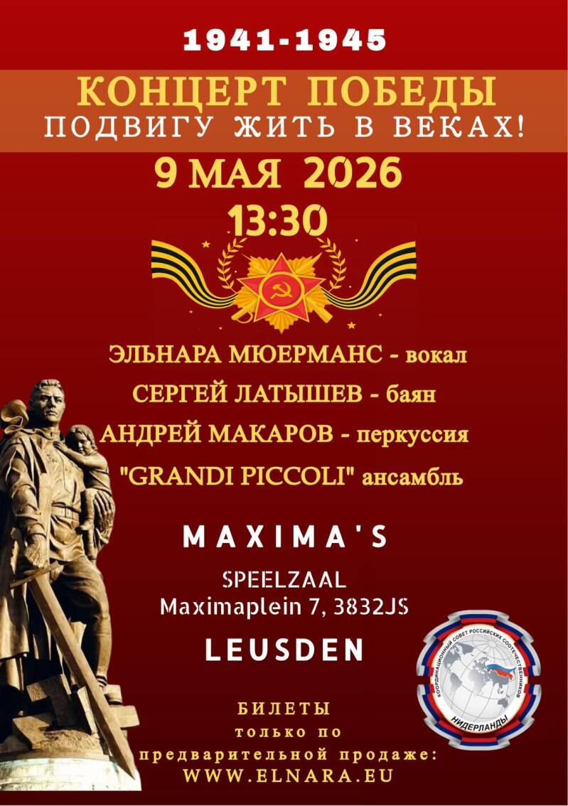 Wij organiseren dit speciale evenement om met familie, vrienden en geïnteresseerden samen te komen ter ere en nagedachtenis van de helden en slachtoffers van de tweede wereldoorlog. De Sovjet-Unie speelde een sleutelrol in de nederlaag van het nazi-fascisme. Componisten en de volkeren hebben fantastische en ontroerende liederen geschreven die veel moed, liefde en vreugde gaven gedurende deze zware tijden.